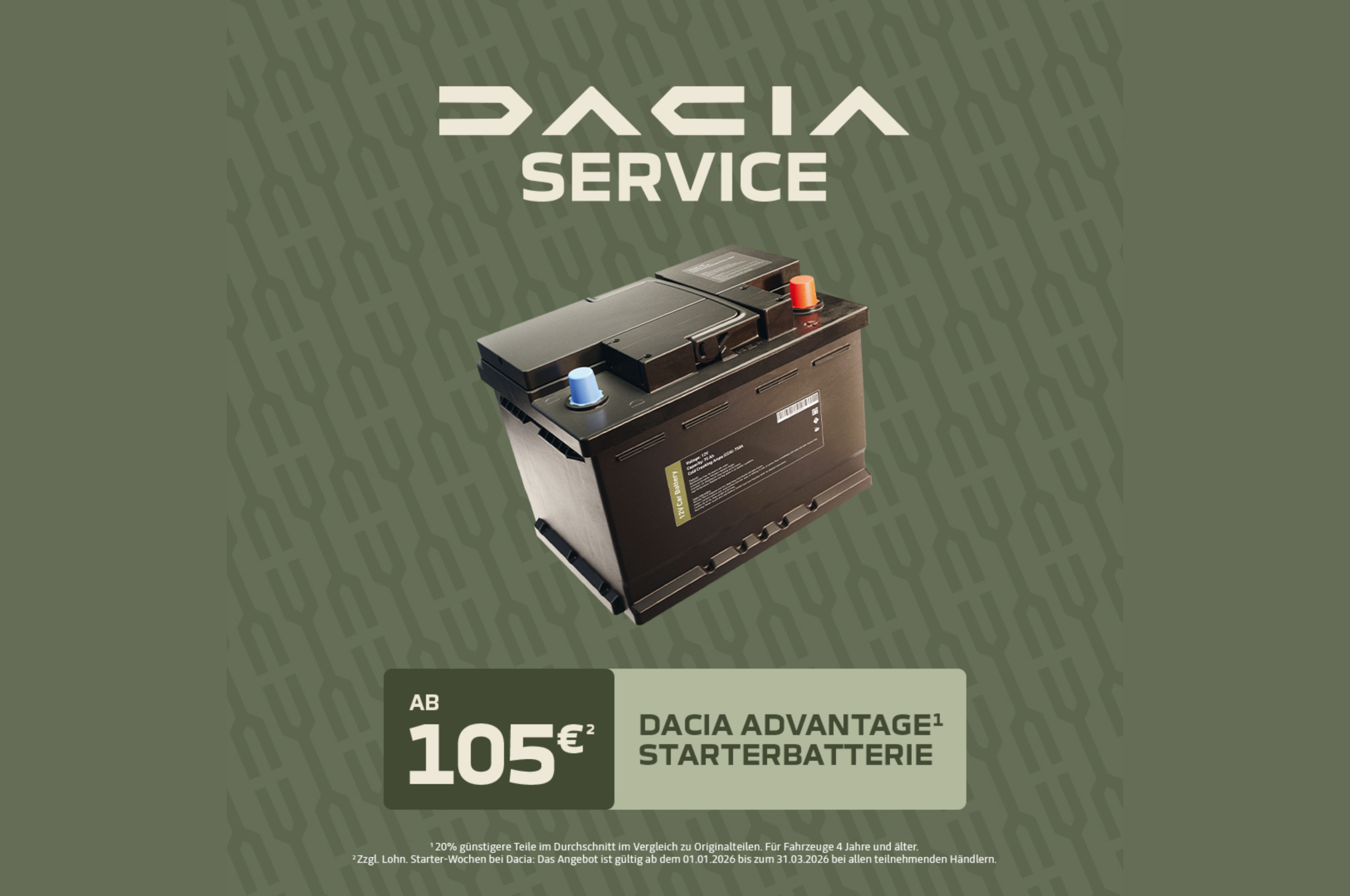 Damit Ihr Dacia zuverlässig startet, bieten wir Ihnen im Rahmen der Dacia Starter-Wochen 2026 ein attraktives Serviceangebot.