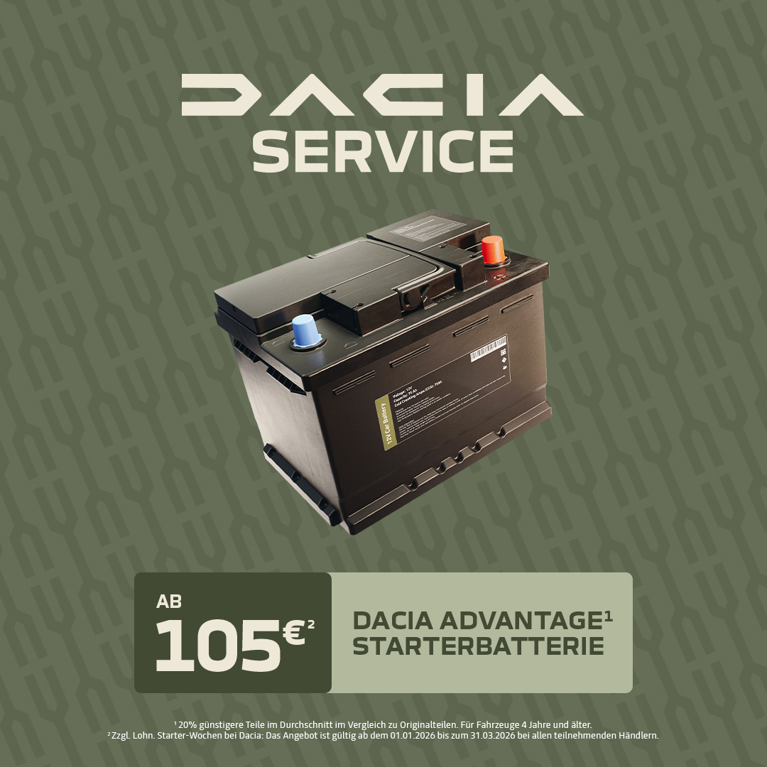 Damit Ihr Dacia zuverlässig startet, bieten wir Ihnen im Rahmen der Dacia Starter-Wochen 2026 ein attraktives Serviceangebot.
