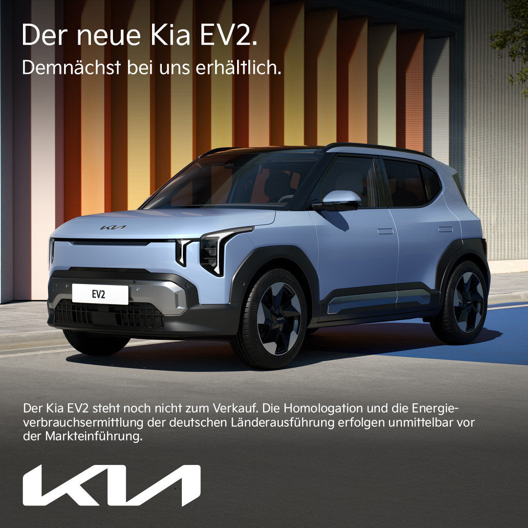 Ab 18.04.2026 ist der neue Elektro-Crossover von Kia live bei uns zu erleben. Der EV2 steht für modernes Design, kompakte Größe und innovative Elektromobilität für den Alltag.