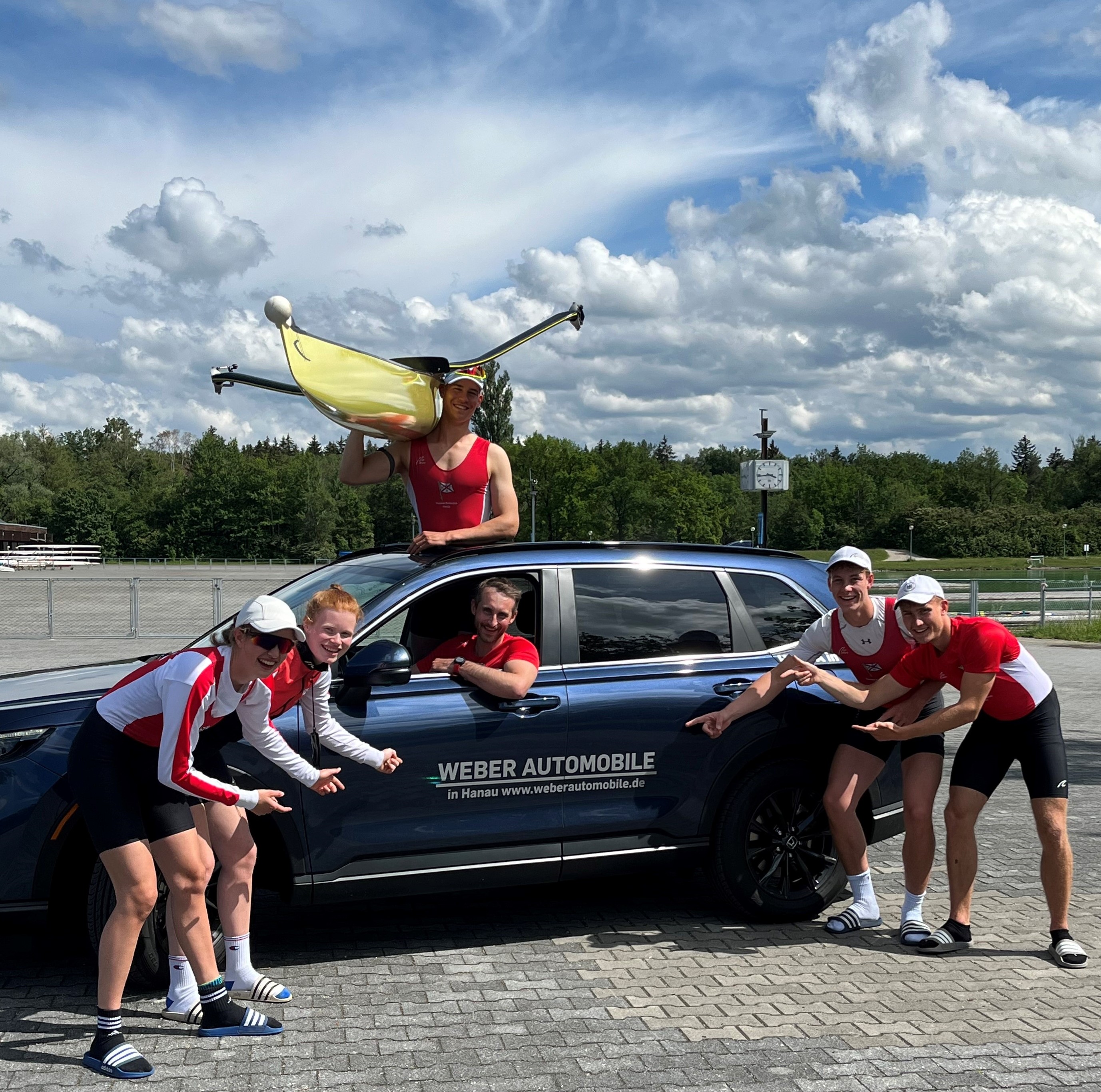 Daher kooperieren wir gerne mit dem Verein und unterstützen bei der Mobilität auf dem Land. Hier das Team auf dem Weg ins Trainingslager nach München mit einem Honda CR-V.
