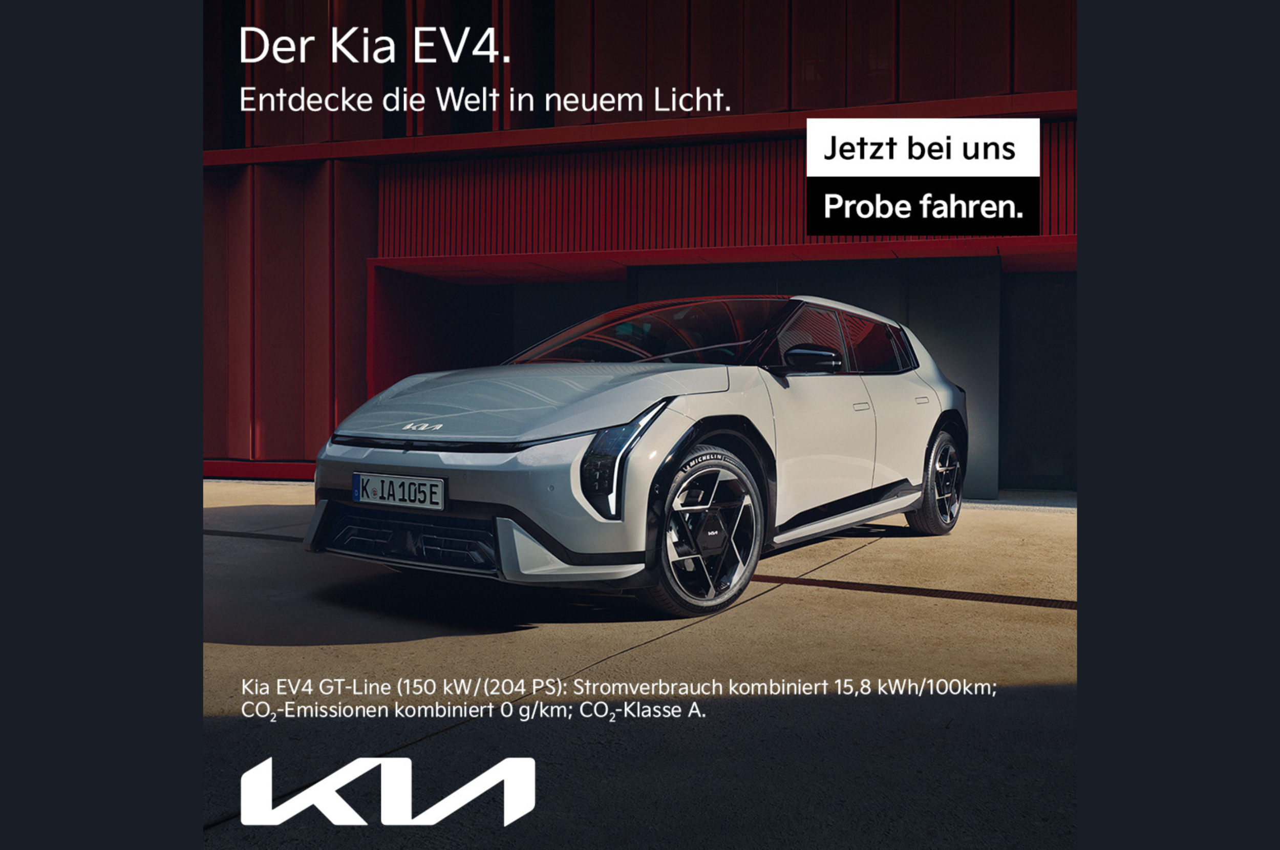6 Ein unverbindliches Leasingbeispiel von KIA Finance, ein Geschäftsbereich der Hyundai Capital Bank Europe GmbH, Europa-Allee 22, 60327 Frankfurt am Main. Bonität vorausgesetzt. Verbraucher haben ein gesetzliches Widerrufsrecht. Nach den Leasingbedingungen besteht die Verpflichtung zum Abschluss einer Vollkaskoversicherung. Kostenpflichtige Sonderausstattung möglich. Zzgl. Überführungskosten in Höhe von 1.495,00 EUR. Alle Preise inkl. gesetzlicher MwSt. Beinhaltet den Kia EV4 Willkommens-Bonus**. Angebot gültig bis 31.12.2025.